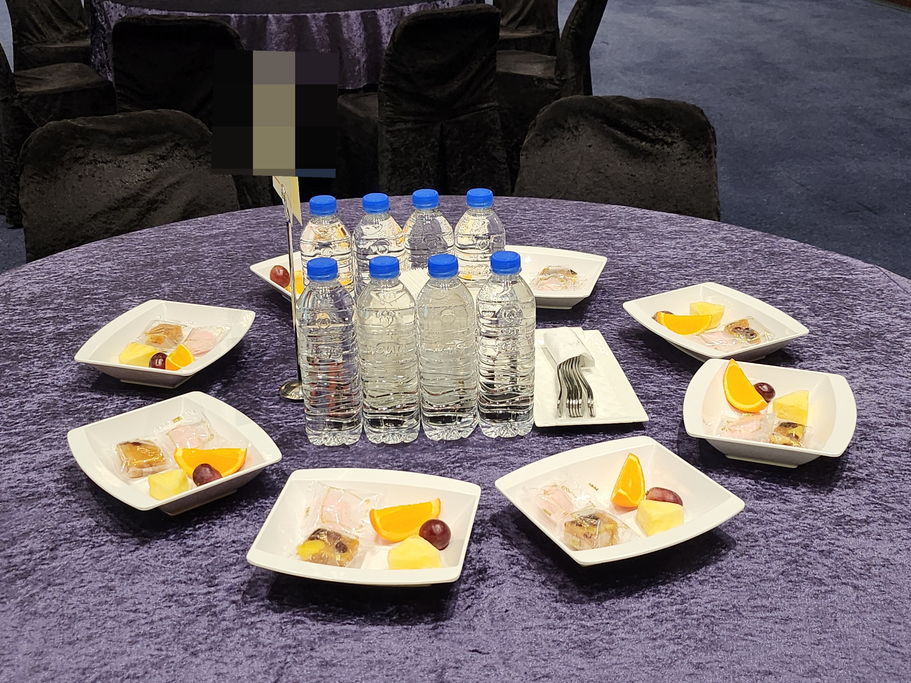 생수와 과일, 빵, 떡 등이 제공됩니다.